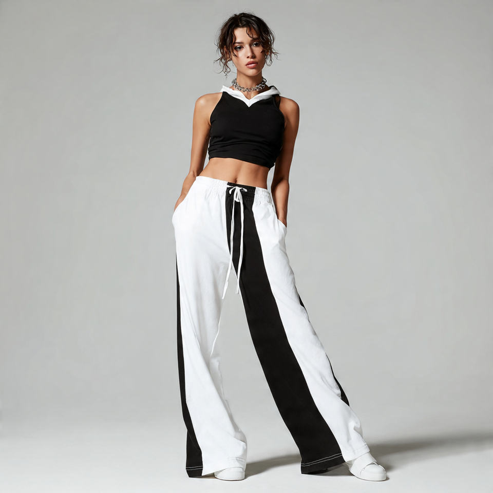 กางเกงวอร์มขากว้างสำหรับผู้หญิงใส่วิ่งแบบมีเชือกผูกเอวกางเกงวิ่งแนวสตรีท