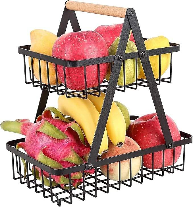 ตะกร้าเก็บของโลหะตาข่ายกว้าง ทนทาน สำหรับวางบนเคาน์เตอร์ครัว