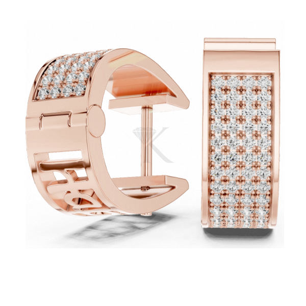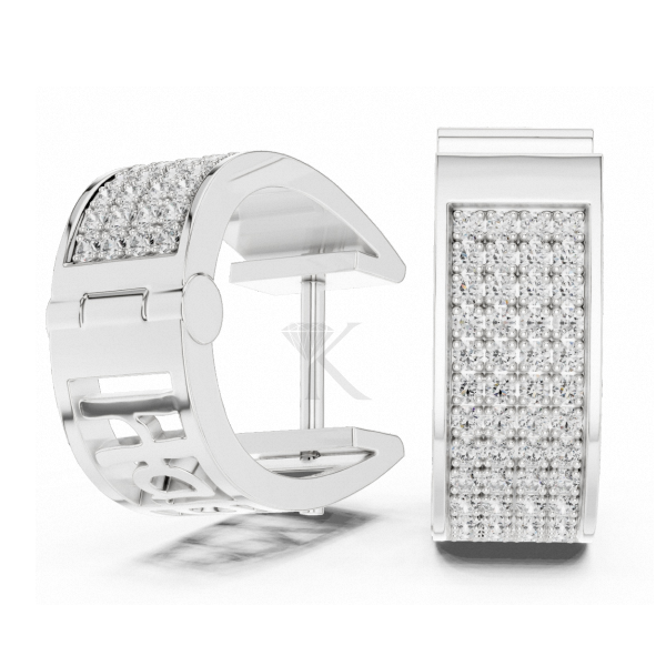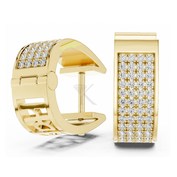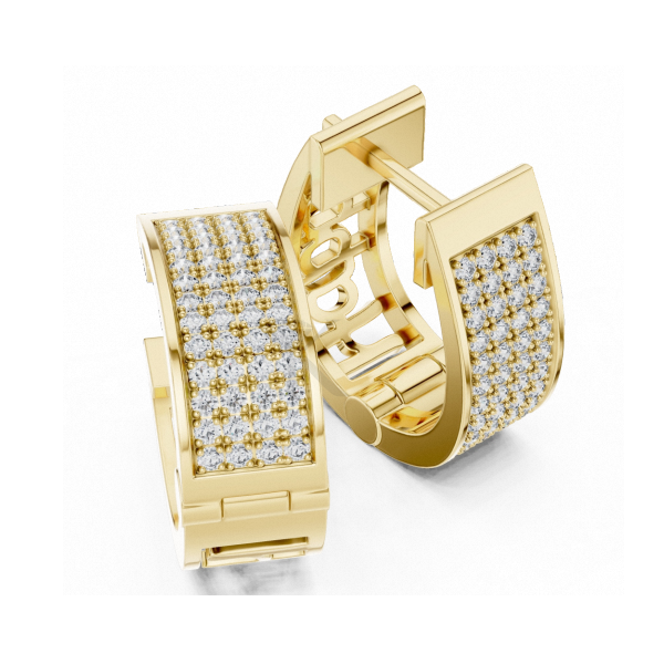 ต่างหูห่วงแบบ Huggee ประดับเพชรเม็ดใหญ่หลายแถวจากแล็บโกรว์ บนตัวเรือนทองคำแท้ ดีไซน์หรูหรา เรียบง่าย สง่างาม เครื่องประดับชั้นดี
