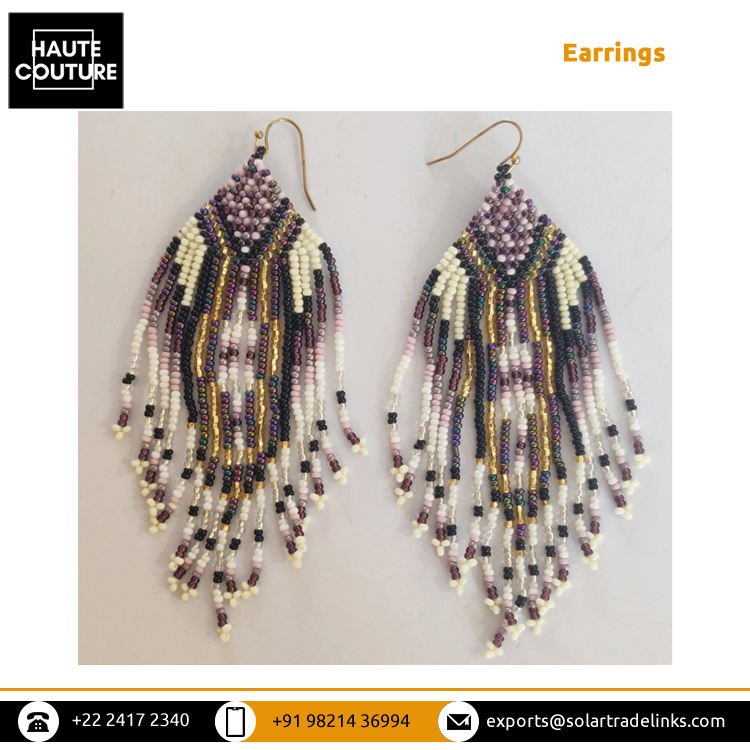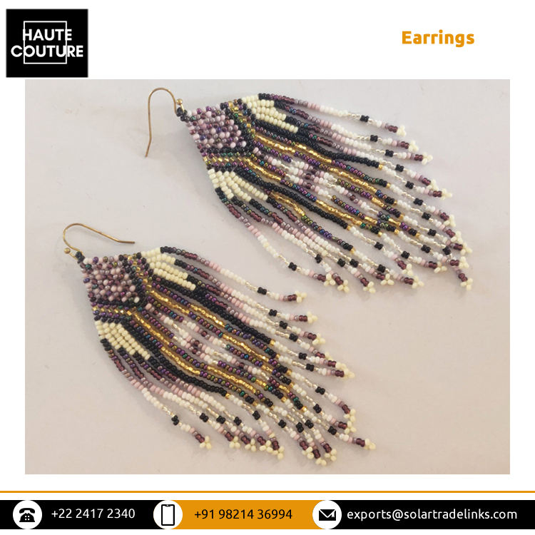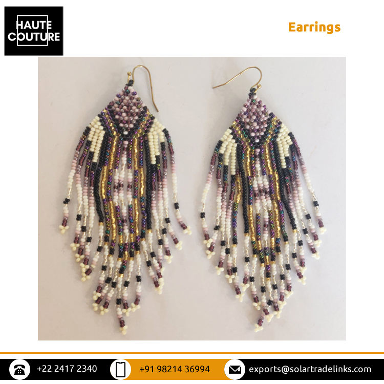Wide Product Range Elegant Design Hand Crafted 10cm Long Rainbow Rhapsody Beaded Tassels Earrings for Women's at Best Price