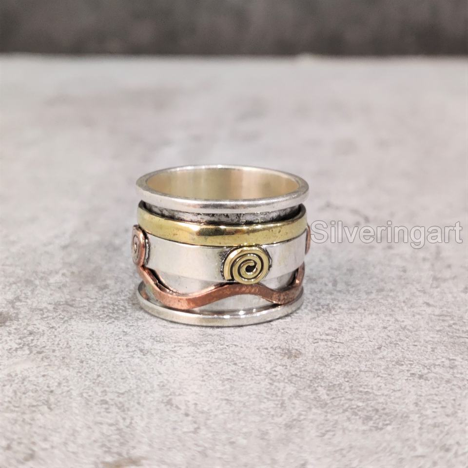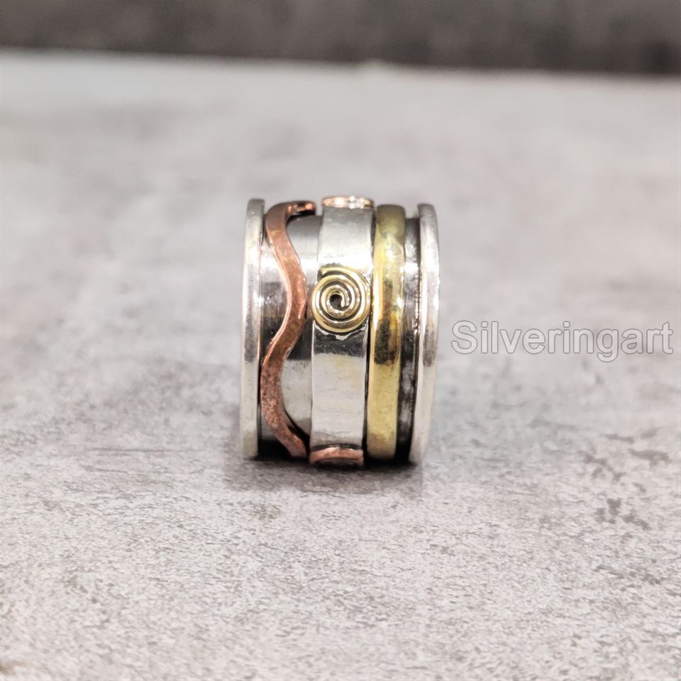 แหวนสปินเนอร์สายสปินเนอร์แบบกว้าง925แหวนนิ้วโป้งของผู้หญิงทำด้วยมือเครื่องประดับคริสต์มาสความวิตกกังวลแหวนปั่นสำหรับผู้ชาย