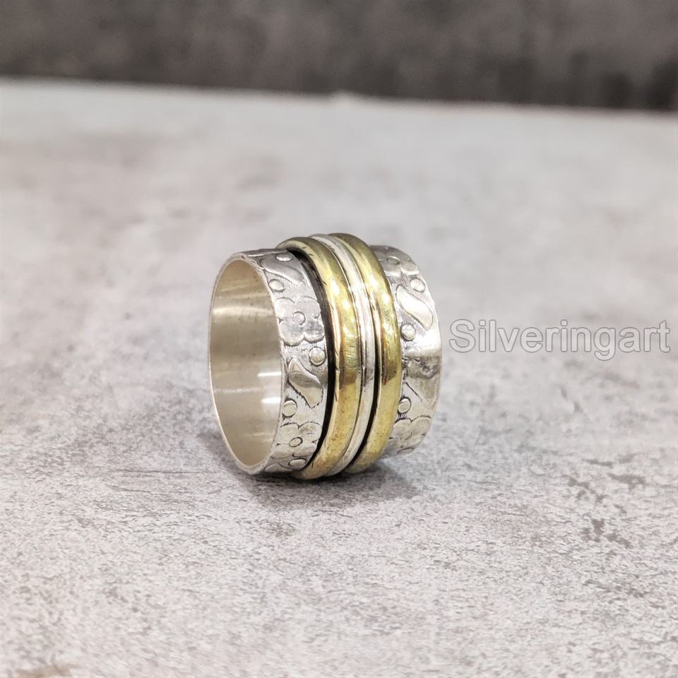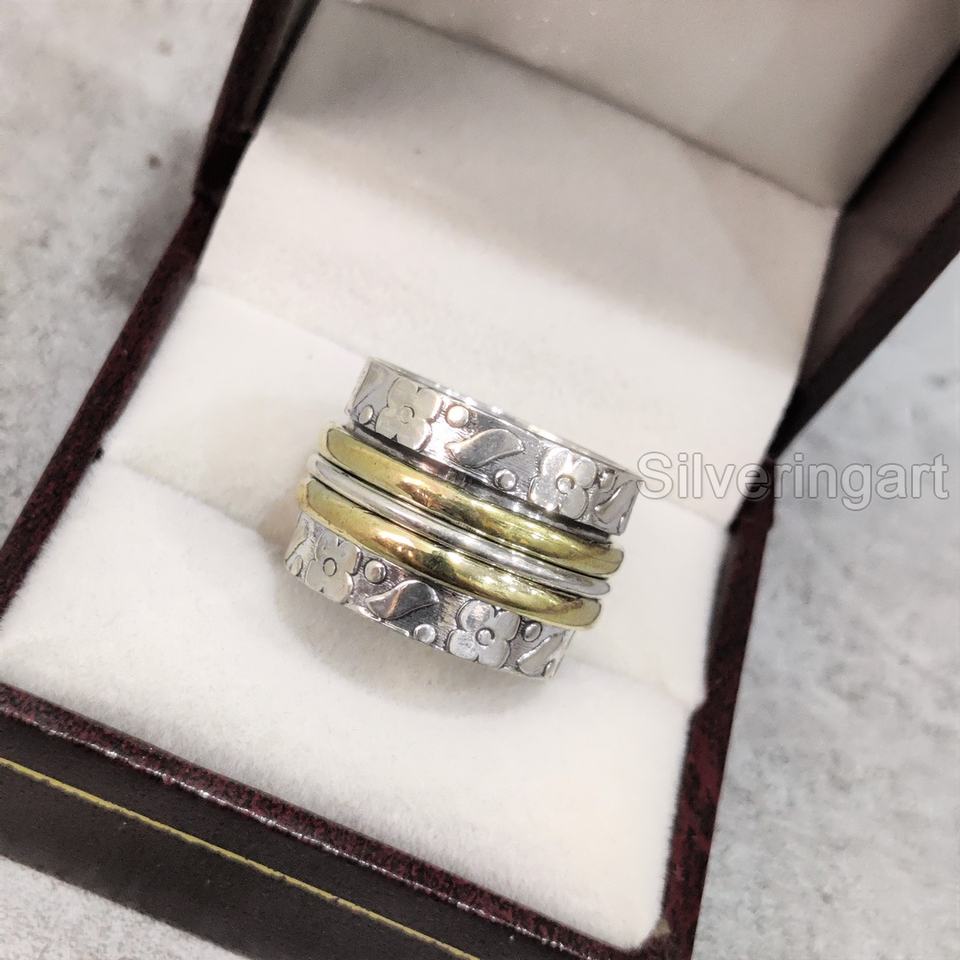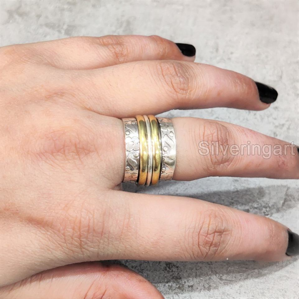 แหวนสมาธิวงสปินเนอร์แบบกว้าง925แหวนนิ้วโป้งของผู้หญิงทำด้วยมือ Fidget Silver Fidget Silver Fidget