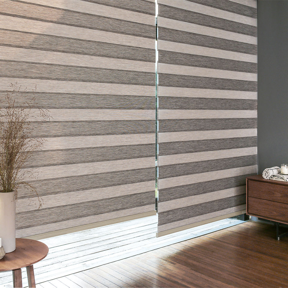 ม่านม้วนลายไม้แบบกำหนดเอง ม่านปรับแสงกลางวันกลางคืนแบบอัตโนมัติ ม่านหน้าต่างสไตล์เกาหลี ม่านม้วนทันสมัยสำหรับบ้าน