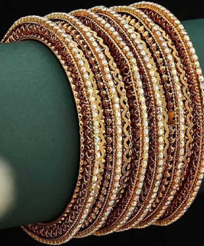 กำไลทองเหลืองและสร้อยข้อมือที่มีแม่ของมุกฝัง