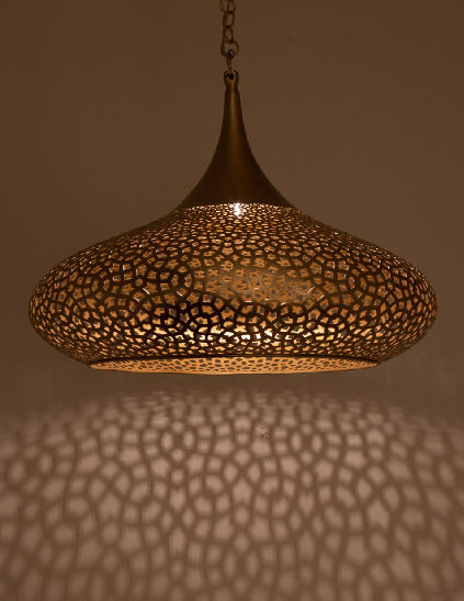 โคมไฟระย้าแบบโมร็อกโกห้อยแบนแบนราบและมีรูปทรงจานรองที่เจาะโลหะทองเหลืองในราคาขายส่ง