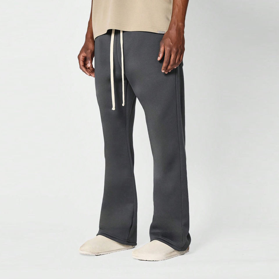 กางเกงวอร์มผ้าฟลีซเทอร์รี่ขากว้างสำหรับผู้ชายกางเกงแนวสตรีทสวมใส่สบายกางเกงขายาวฮิปฮอปกระดิ่งสไตล์ตรง