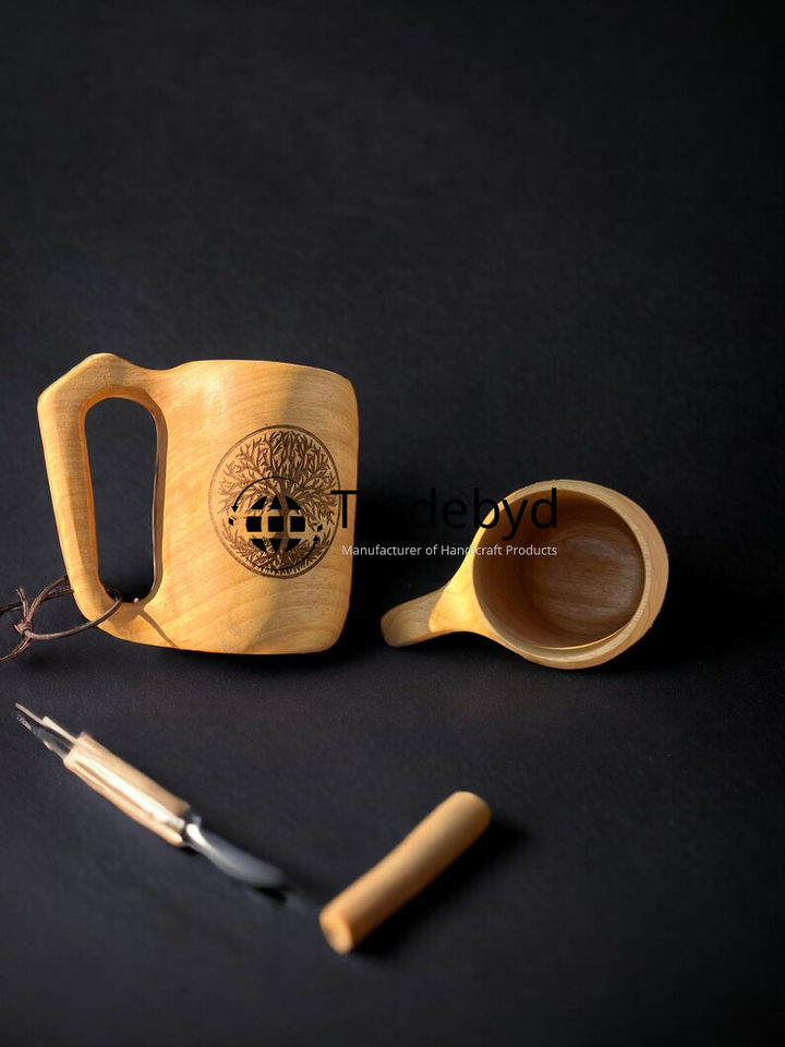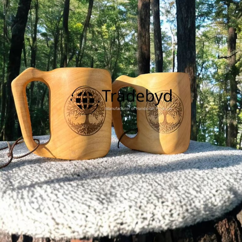 แก้วมักทำจากไม้ลายไม้ธรรมชาติขนาดใหญ่ทำขึ้นเพื่อการตั้งค่าโต๊ะแบบชนบทเหมาะสำหรับห้องครัวในฟาร์มโดย tradebyd