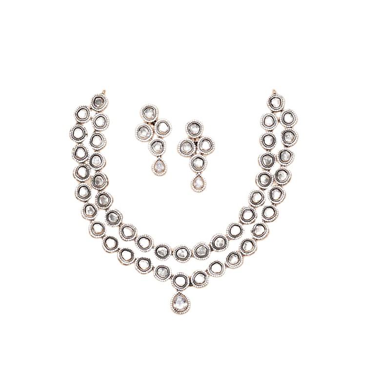 ชุดสร้อยคอหลายชั้นประดับหินลายจุดสีขาวคุณภาพสูงพร้อมต่างหูสีทอง