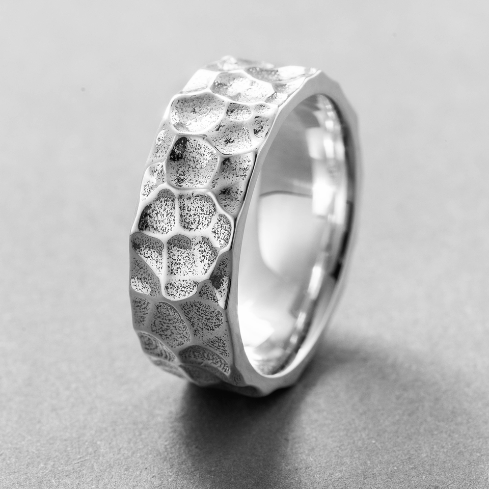 ความกว้าง8มิลลิเมตรพื้นผิวที่ไม่สม่ำเสมอ925สเตอร์ลิงเศษไม้ชุบแหวนคู่