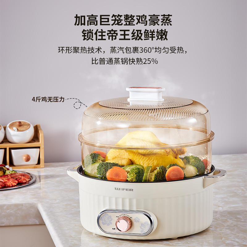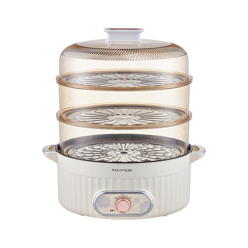 เครื่องนึ่งไฟฟ้าไวเฟอร์ 1500W หม้อนึ่งอเนกประสงค์ 4 ชั้น สีเบจ พร้อมฝาแก้ว