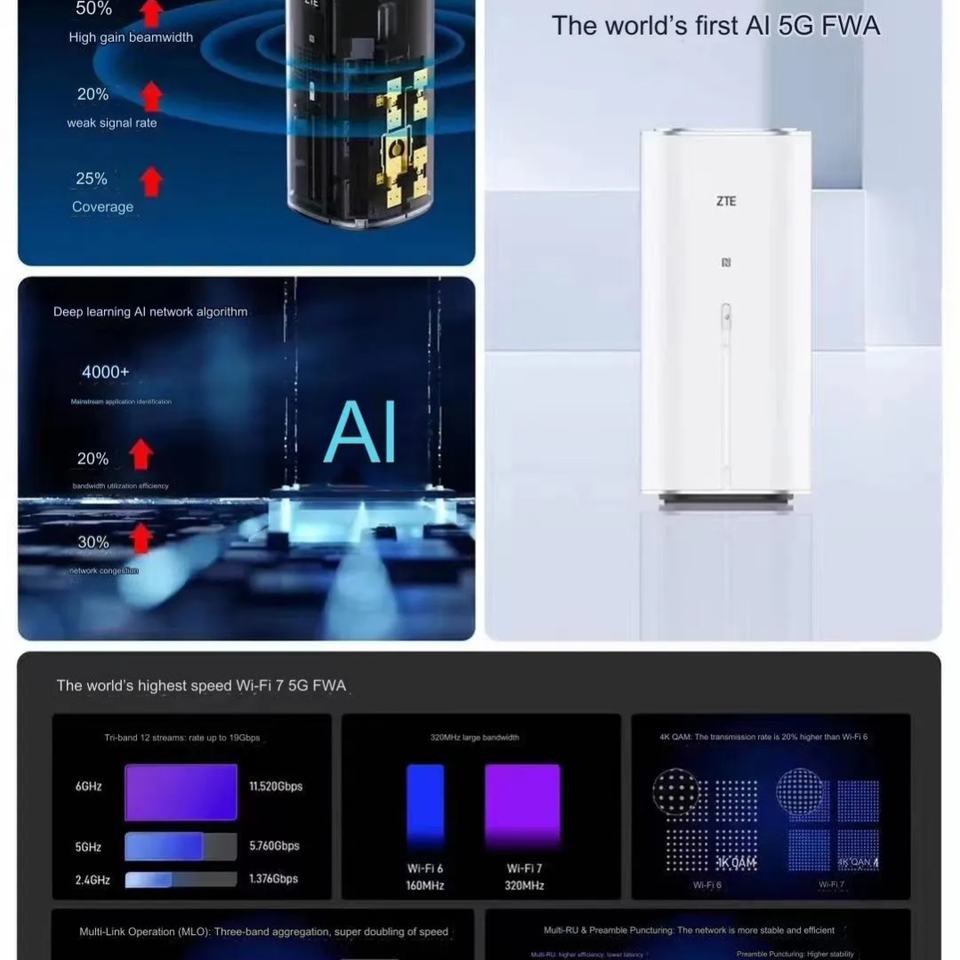 ไวไฟ7เราเตอร์5G ใหม่ Wifi7 G5อัลตร้า Mc8531 5g Ai FWA เราเตอร์ Cpe ในร่ม Be19000ไวไฟ7พร้อมซิมการ์ด