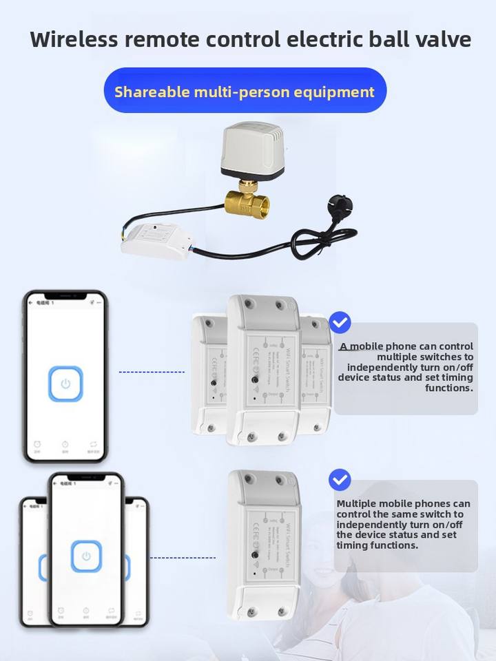 วาล์วน้ำไฟฟ้าควบคุมระยะไกลผ่าน Wifi ป้องกันความชื้น 220V วาล์วน้ำอัจฉริยะไร้สายตั้งเวลาได้ แบบปิดปกติ