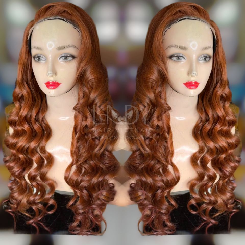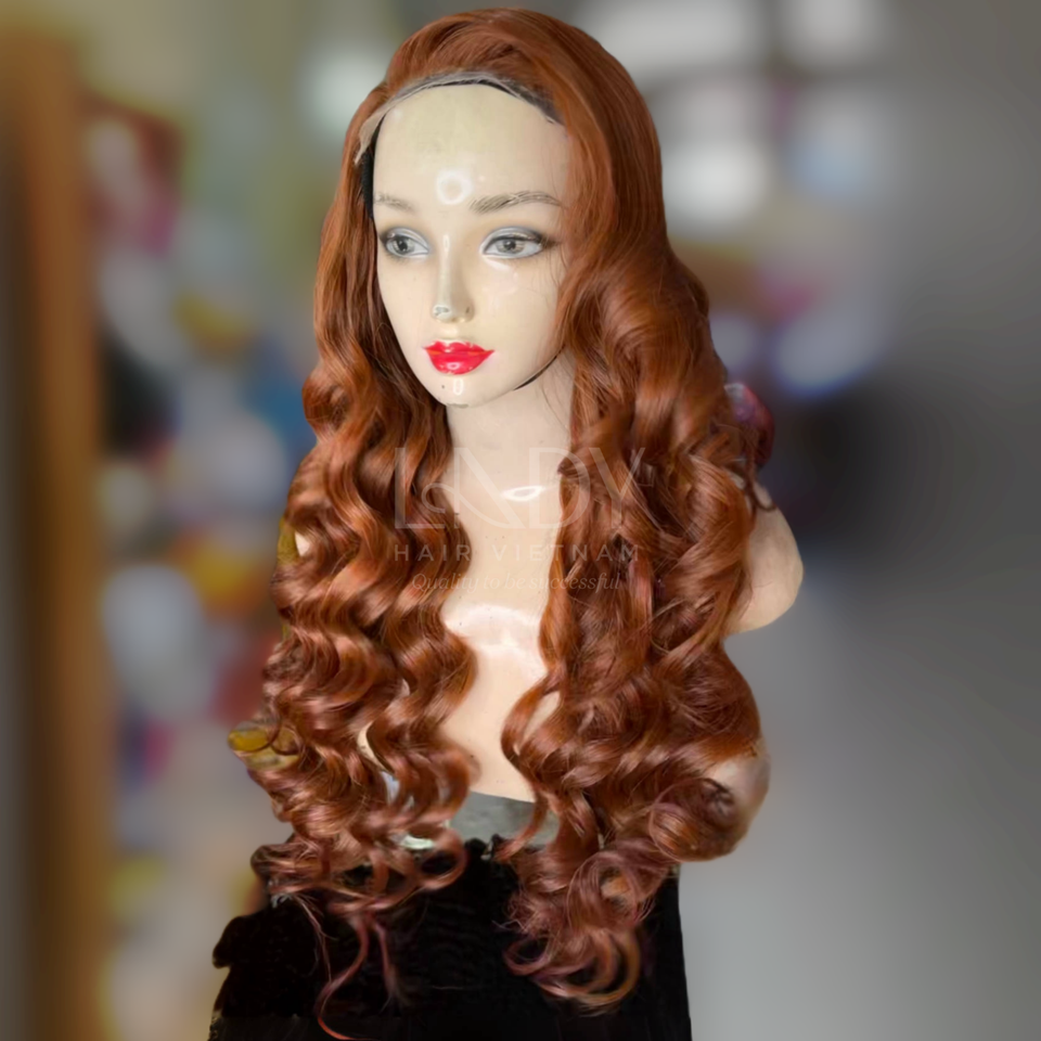 วิกผมจากผมจริงเนื้อหยักสีน้ำตาลยาวปานกลาง