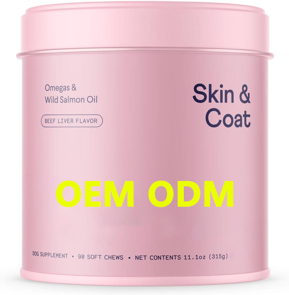 น้ำมันปลาแซลมอนป่าอลาสกันนุ่มเคี้ยว EPA DHA โอเมก้า3กรดไขมันวิตามินซีอีไบโอตินมินผิวหนังและเสื้อโค้ทอาหารเสริมสำหรับสุนัขสัตว์เลี้ยง