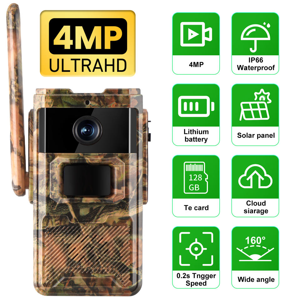 กล้องติดตามแบตเตอรี่4G ลายพรางป่าใช้พลังงานแสงอาทิตย์กล้อง CCTV เส้นทางล่าสัตว์แอปพลิเคชั่น ucon
