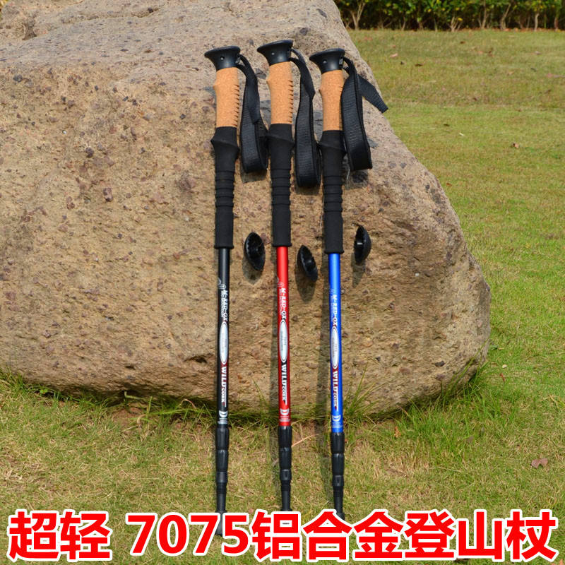 ไม้เท้าเดินป่าอะลูมิเนียม Wild Cork 7075 แบบ 3 ท่อน ป้องกันการกระแทก สำหรับเดินป่า ปีนเขา สีแดง น้ำเงิน ดำ