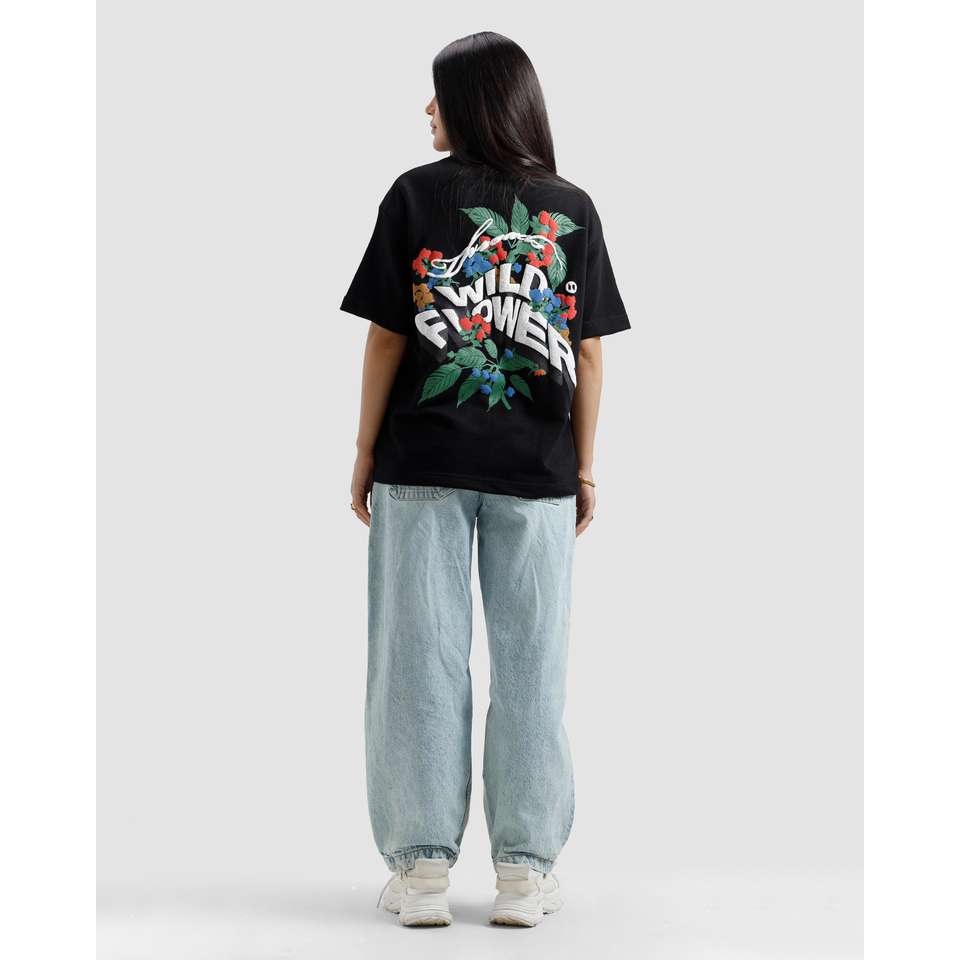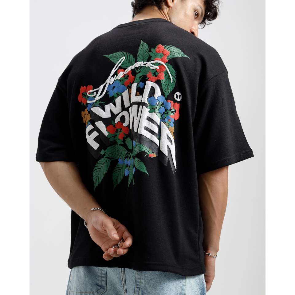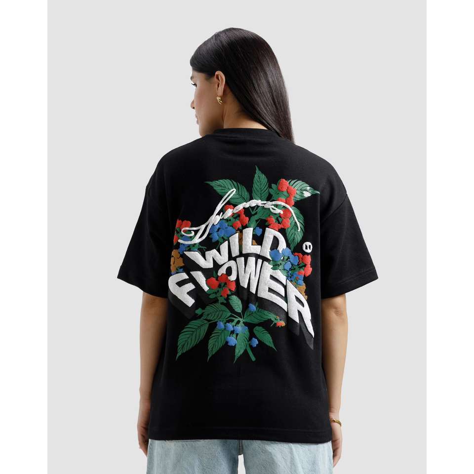 Wild Flower Printed T-Shirt 100% Cotton Jersey Breathable and Comfortable Discharge Printed Solid Logo Short Fitted Style