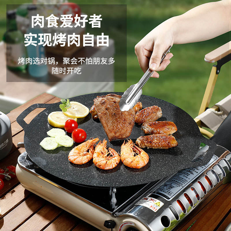 กระทะย่างกลางแจ้งแบบพกพา วัสดุหินไมแฟน ทรงกลม ไม่ติดกระทะ น้ำหนักเบา เหมาะสำหรับทอด ปิ้งย่าง และทำอาหารสำหรับแคมป์ปิ้ง