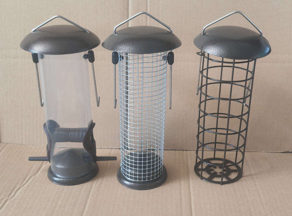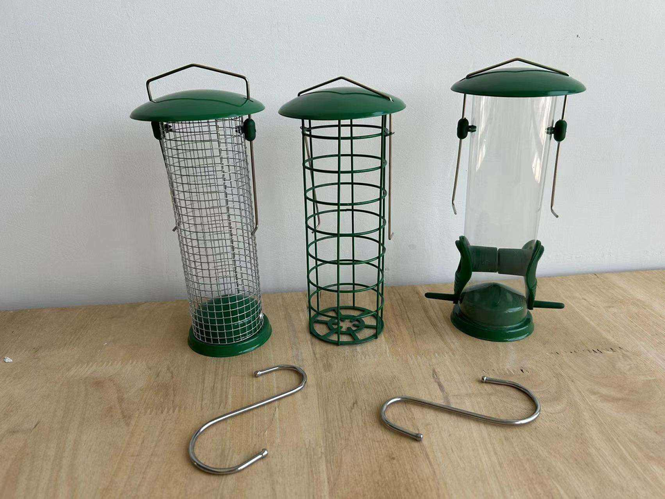 ชุดที่ให้อาหารนกโลหะสำหรับสวนกลางแจ้ง แบบแขวน ตาข่ายสำหรับให้อาหาร โครงสร้างเหล็กแข็งแรง ทนทาน น้ำหนักเบา สีเขียว ตกแต่งบ้าน