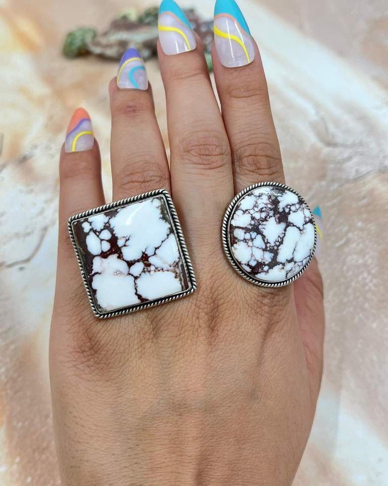 แหวนแบบปรับได้สีเทอร์ควอยส์รูปม้าป่าทำด้วยมือแบบเรียบง่ายเครื่องประดับสไตล์ตะวันตกเฉียงใต้สำหรับผู้หญิง