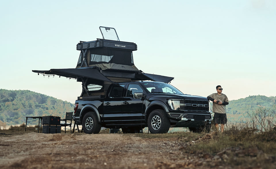 เต็นท์หลังคารถแบบเปลือกแข็งสองชั้นอัตโนมัติ Wild Land รุ่นใหม่ พร้อมกันสาดสำหรับรถออฟโรด