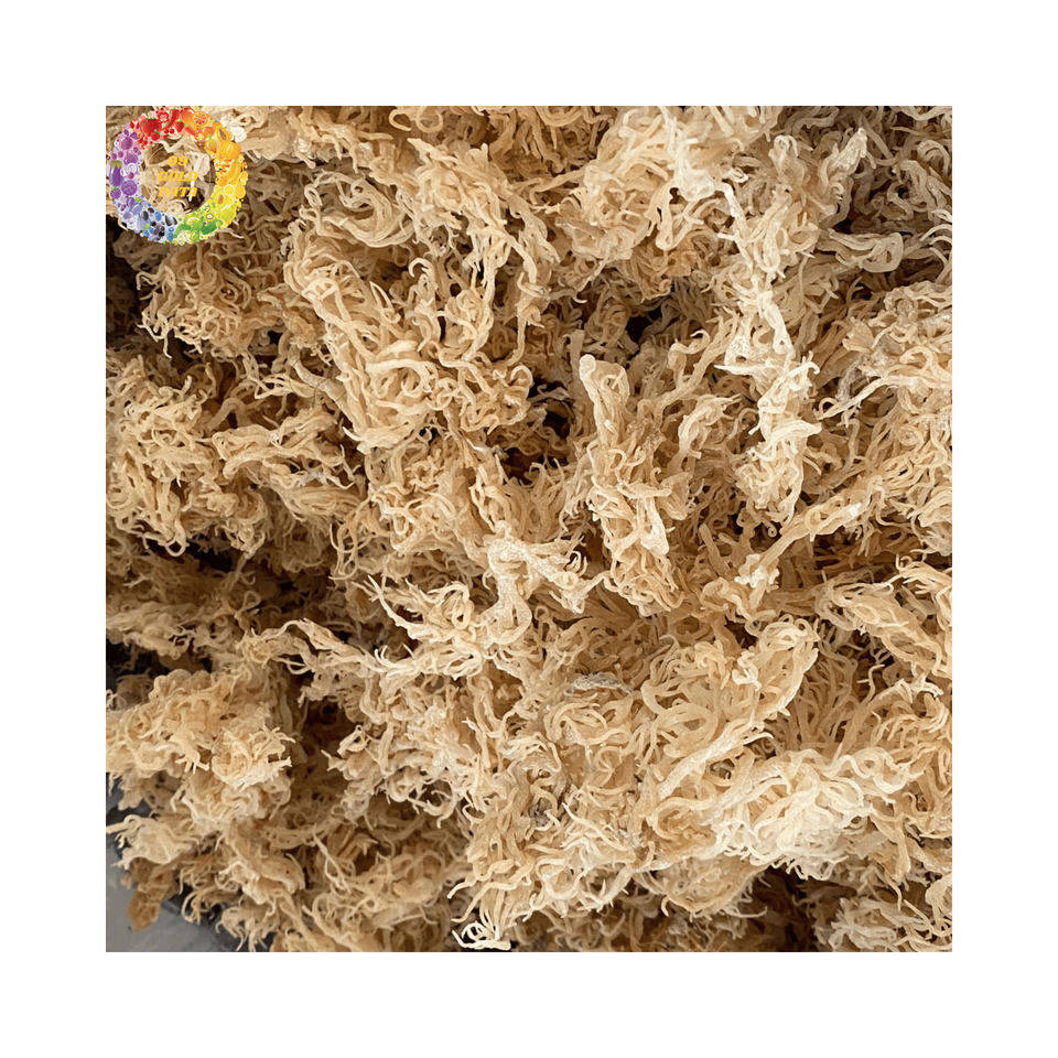 มอสทะเลสีทองอบแห้งจากป่าสาหร่ายมอสไอริชแบบไม่ใส่เกลือสำหรับเจล Seamoss Eucheuma cottonii ถุง25กก. ขนาดใหญ่