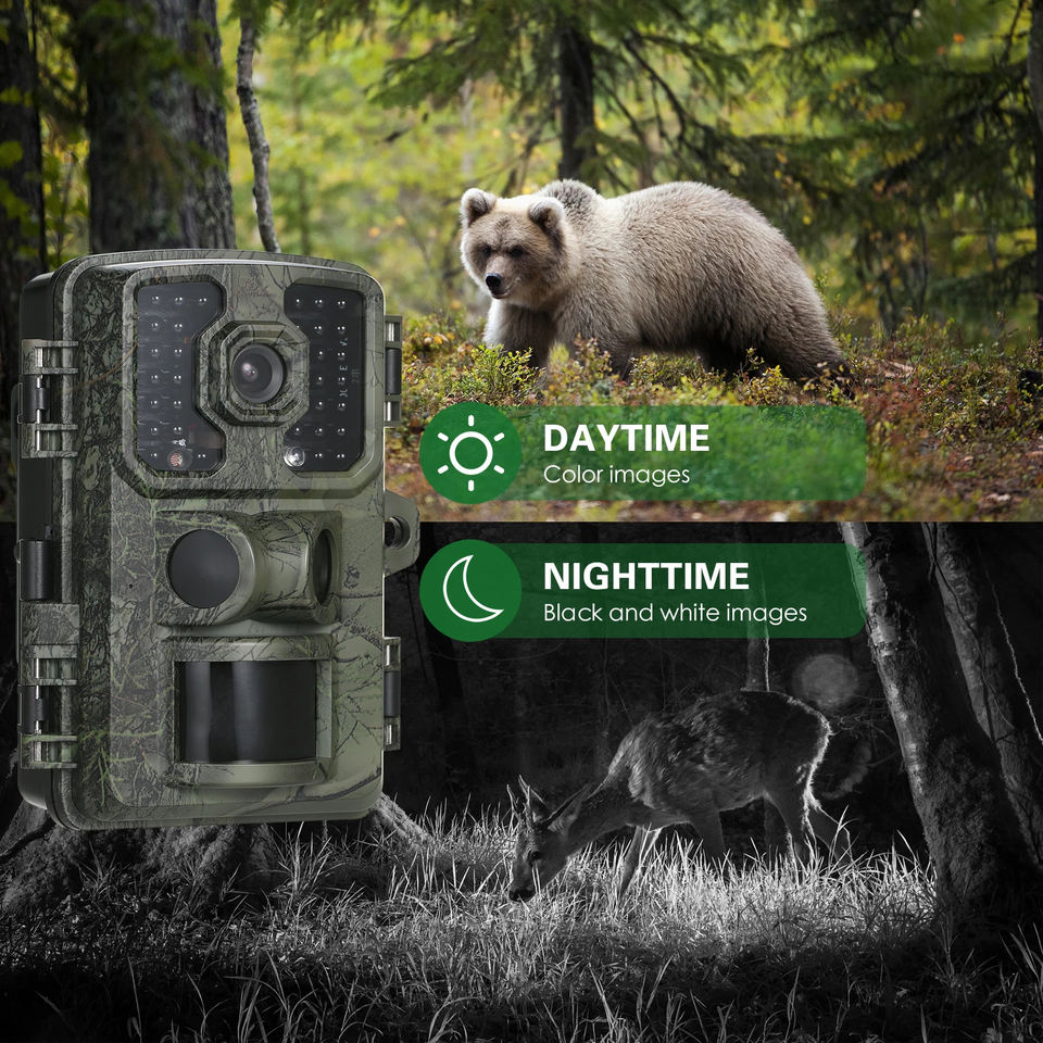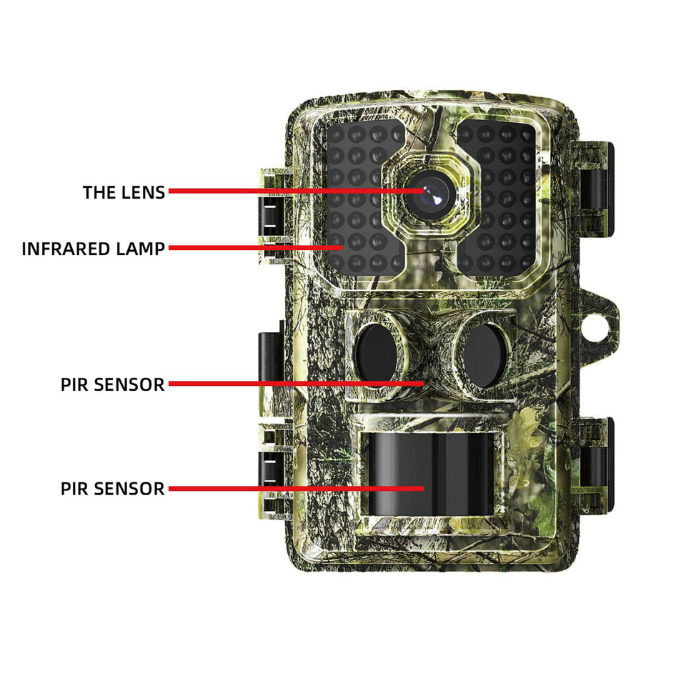 กล้องดักถ่ายสัตว์ป่า 58 ล้านพิกเซล อินฟราเรด กล้องวงจรปิดภายนอกอาคาร ความละเอียด 2.7K กล้องตรวจจับความร้อนสำหรับล่าสัตว์ พร้อมระบบมองเห็นกลางคืน เซ็นเซอร์ CMOS