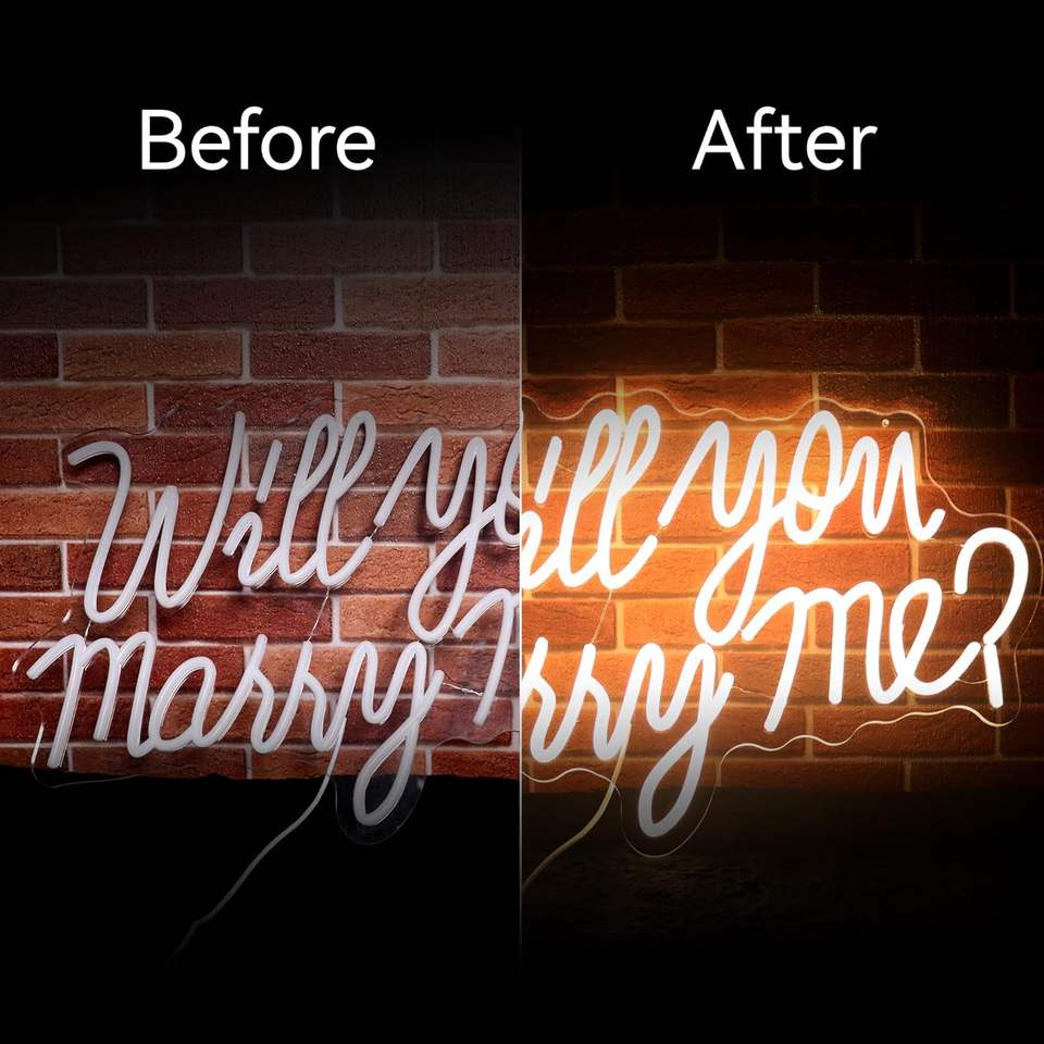 คุณจะแต่งงานกับฉันป้ายนีออนสำหรับฉากหลังของงานแต่งงานไฟ LED ตัวอักษรสำหรับการขอแต่งงานในวันวาเลนไทน์