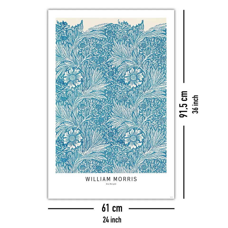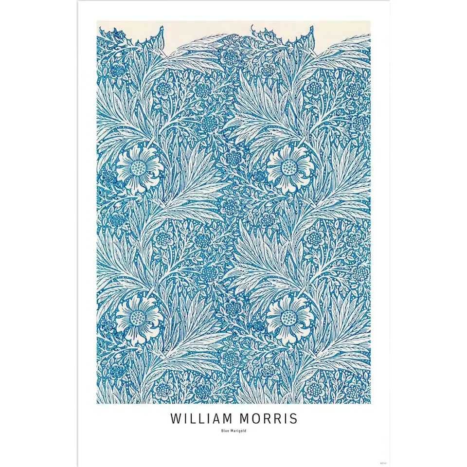 วิลเลียม มอร์ริส โปสเตอร์สีน้ำลายดอกดาวเรืองสีน้ำเงินวาดด้วยมือ ภาพวาดดอกไม้สมัยใหม่