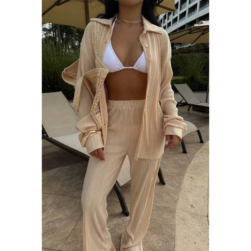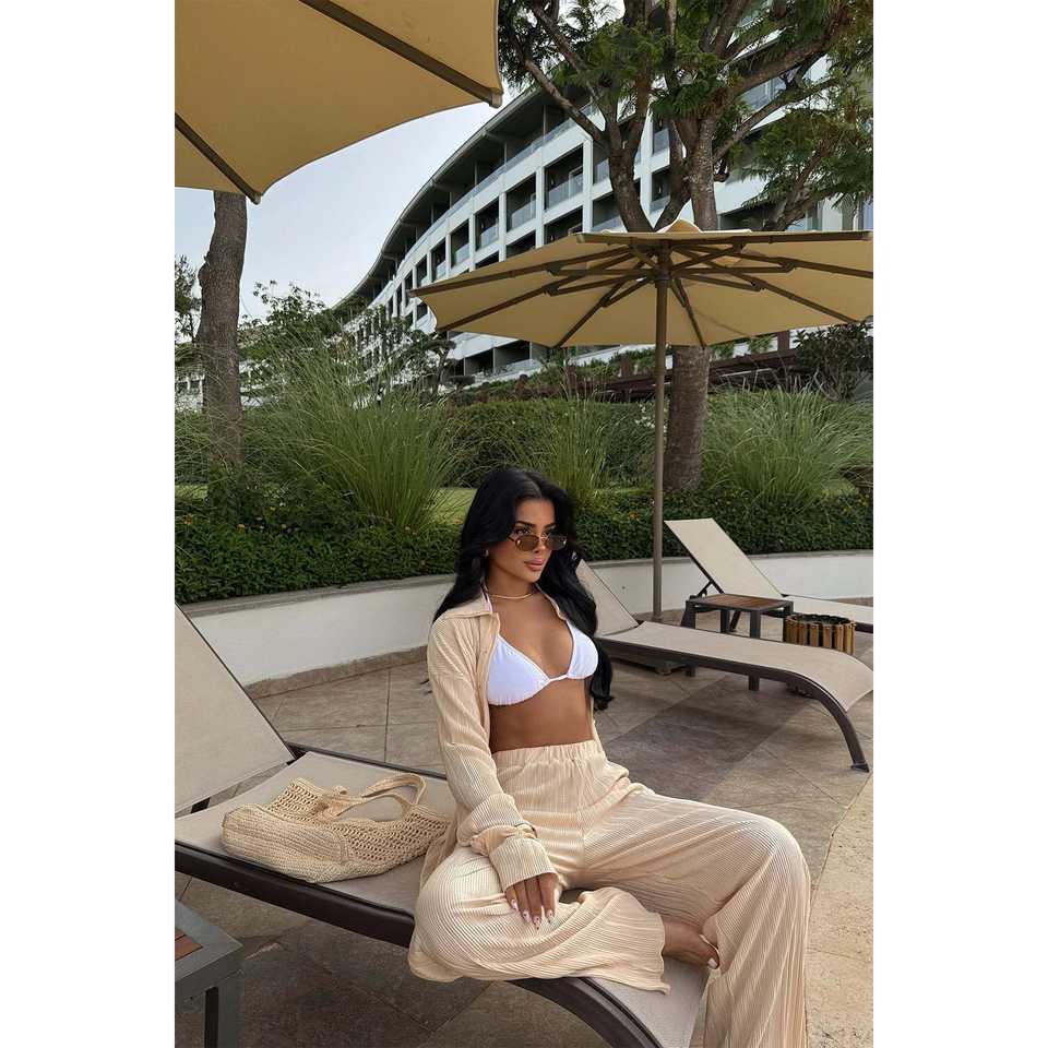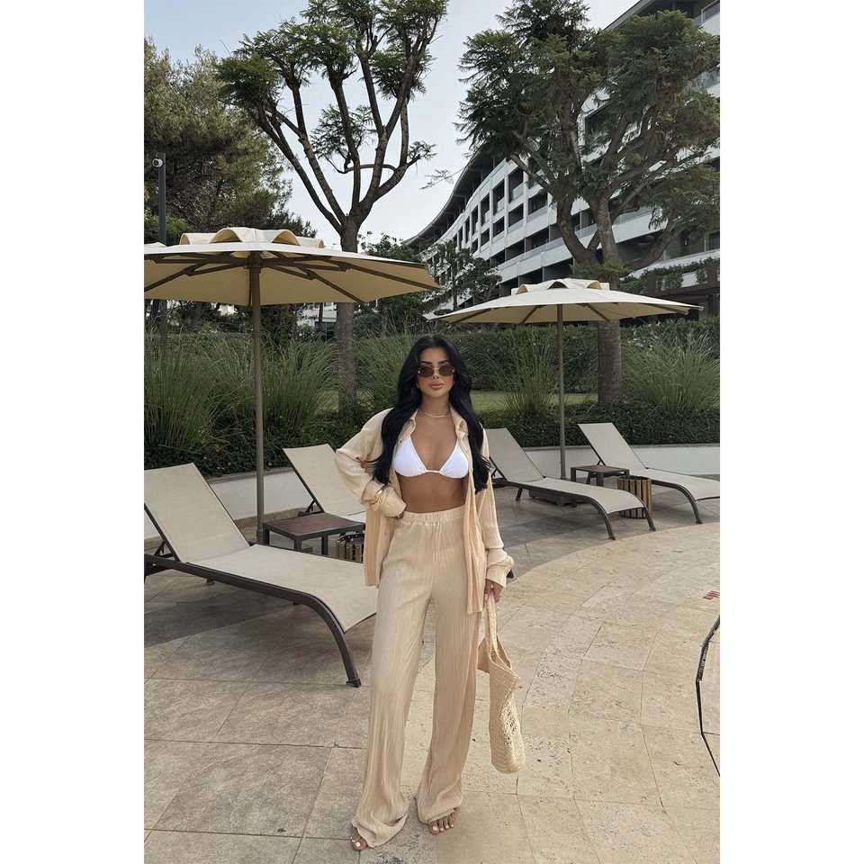 เสื้อท็อปวิสโคสทรงหลวมสไตล์สตรีทคลับคุณภาพสูง ลายสก็อต แบรนด์ Wilma Beige เหมาะสำหรับใส่ในชีวิตประจำวันช่วงฤดูร้อน
