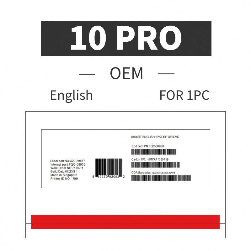 วินโดวส์ โปร 10 ดีวีดี แพ็คเกจ OEM พร้อมสติกเกอร์ COA ภาษาอังกฤษ วินโดวส์ 10 โปร บรรจุภัณฑ์แบบกระดาษแข็ง รับประกัน 12 เดือน จัดส่งฟรีสำหรับ 100 ชิ้น