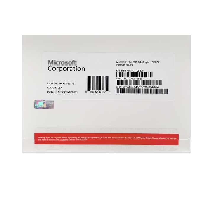 ประเภทรุ่น:ชนะเซิร์ฟเวอร์2019 Datacenter อังกฤษ