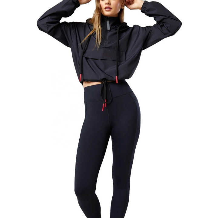 เสื้อแจ็คเก็ตกันลมผู้หญิง ครอปท็อป คอสูง ซิปครึ่งตัว ฟิตเนส ไซส์ใหญ่ เสื้อผ้าไนลอน กันลม เสื้อโค้ทออกกำลังกาย โยคะ ยิม