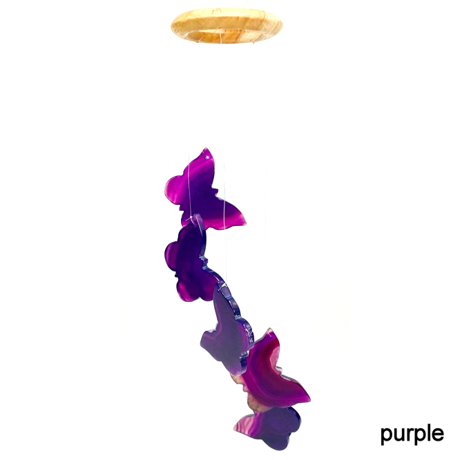 กระดิ่งลม ชิ้นอาเกตสีม่วง รูปผีเสื้อ คริสตัล ศิลปะและงานฝีมือตกแต่ง อาเกตธรรมชาติหลากสีสัน ชิ้นกระดิ่งลม