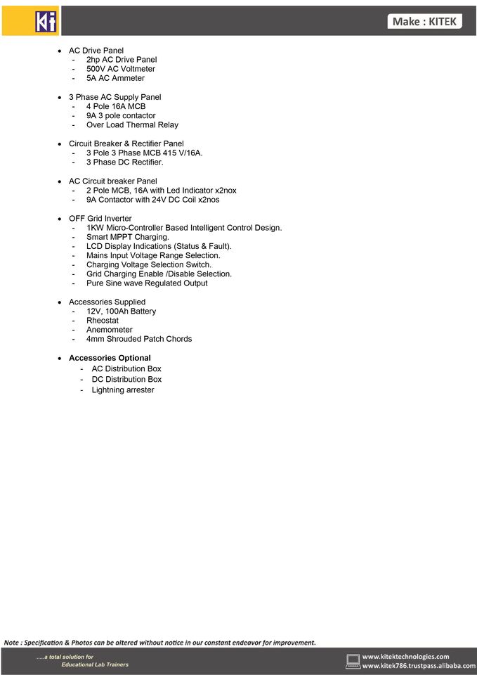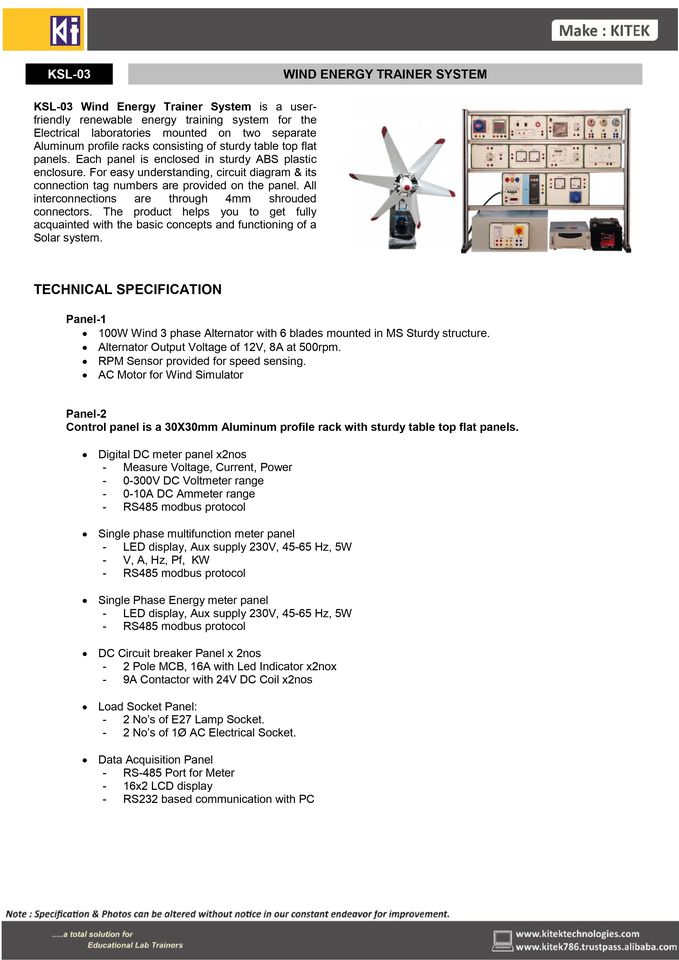 ระบบฝึกอบรมการผลิตพลังงานลม อุปกรณ์ห้องปฏิบัติการการศึกษาพลังงานทดแทน