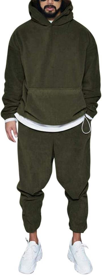 ชุดกันลมสำหรับผู้ชายชุดวอร์มสองชิ้นพร้อมฮู้ดสำหรับฤดูหนาวชุดพิมพ์โลโก้พัฟ