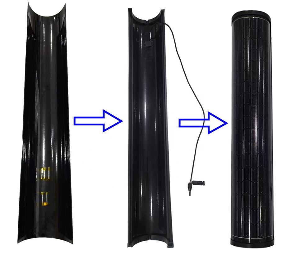 แผงโซลาร์เซลล์แบบโมโนซิลิคอนทรงกระบอก ดีไซน์โค้ง ทนลม 140 วัตต์ สำหรับเสาไฟถนนพลังงานแสงอาทิตย์