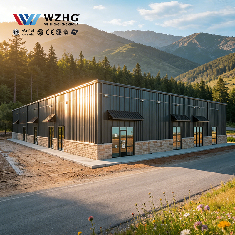 โกดังโครงสร้างเหล็กทนลม สำเร็จรูป ป้องกันพายุเฮอริเคน ผิวเคลือบกัลวาไนซ์ อายุการใช้งาน 50 ปี โรงงานอุตสาหกรรม