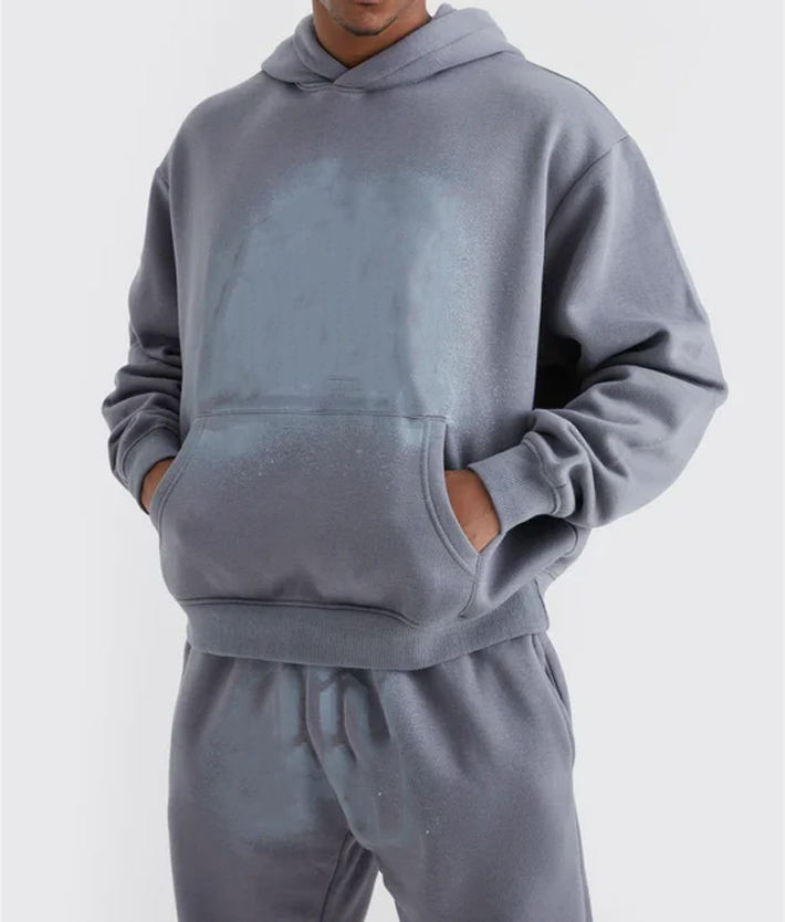 ชุดวอร์มกีฬาแบบมีฮู้ดและกางเกงขายาว ดีไซน์เรียบง่าย ล้างสีแบบแอซิดวอช ผลิตจากโพลีเอสเตอร์ ขายส่งสำหรับทุกเพศ