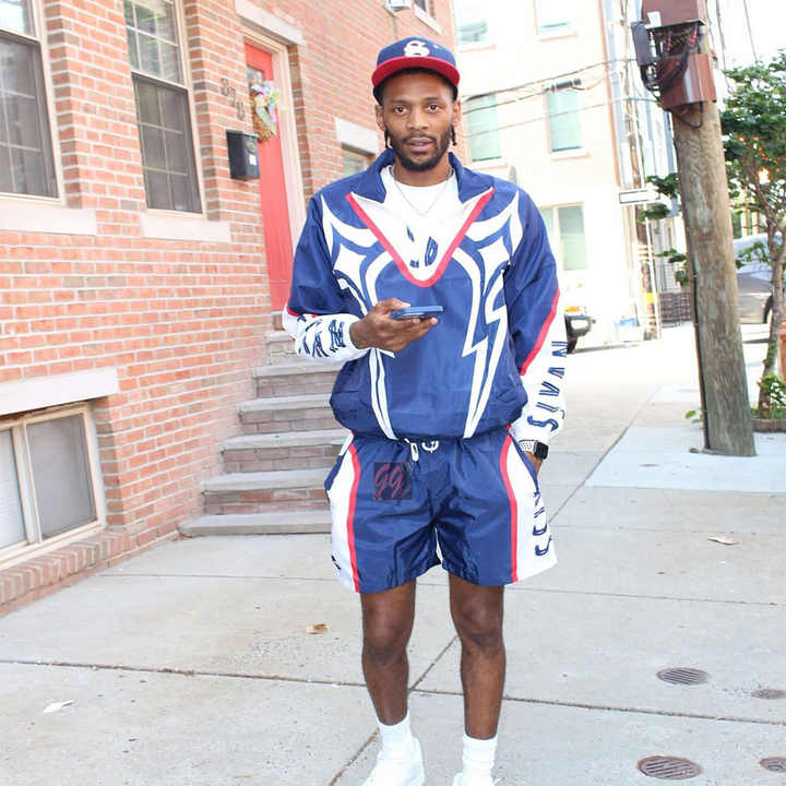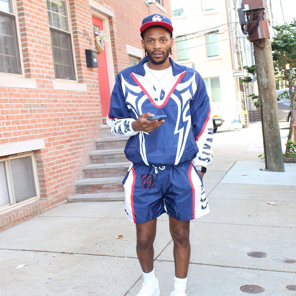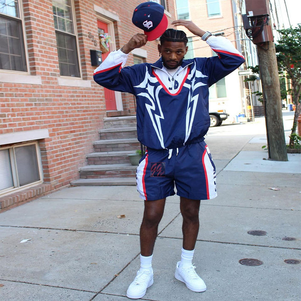ชุดเสื้อแจ็คเก็ตกันลมและกางเกงขาสั้น ผ้าไนลอน ซิปครึ่งตัว พิมพ์ลายแบบระเหิด คุณภาพสูง น้ำหนักเบา ชุดกีฬาสองชิ้น
