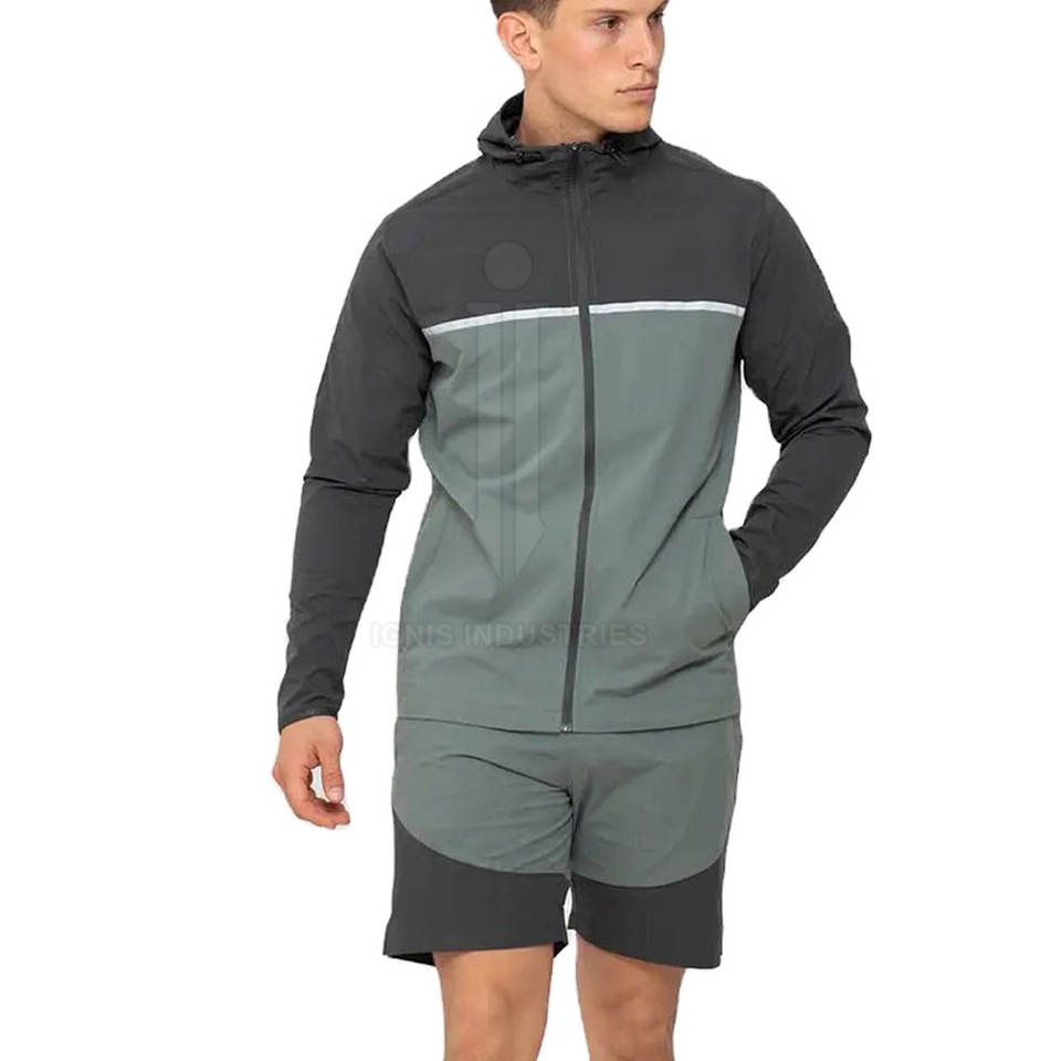 ชุดเสื้อกันลมตัวสั้นสำหรับผู้ชายชุดสองชิ้นสำหรับวิ่งออกกำลังกายการเดินทางในฤดูร้อน