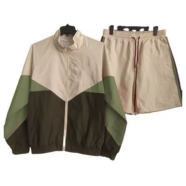 ชุดเซ็ตเสื้อแจ็คเก็ตกันลมแบบสั้นสำหรับผู้ชาย มีซิป ซับในตาข่ายสะท้อนแสง กางเกงขาสั้นแบบจ็อกเกอร์ สีเรน น้ำหนักเบา ผลิตจากไนลอน
