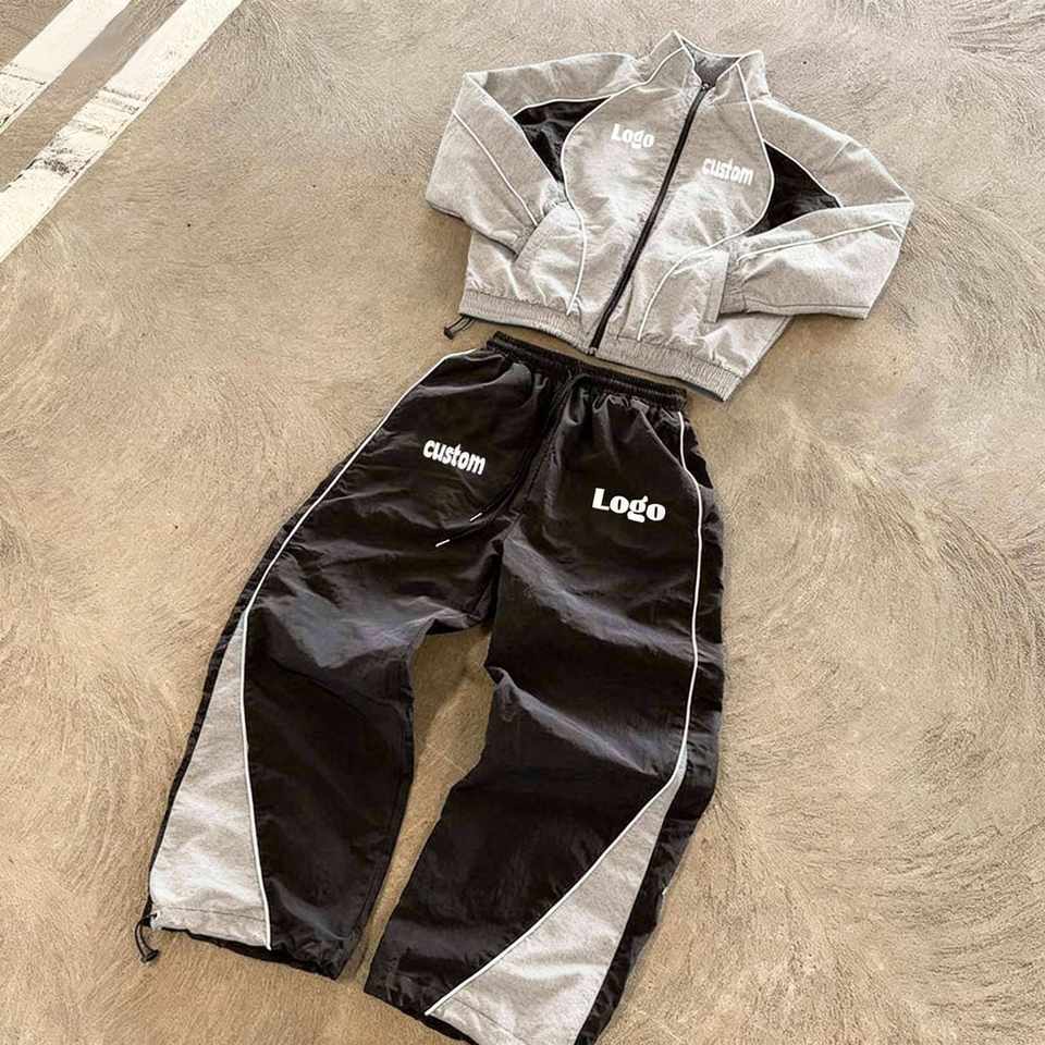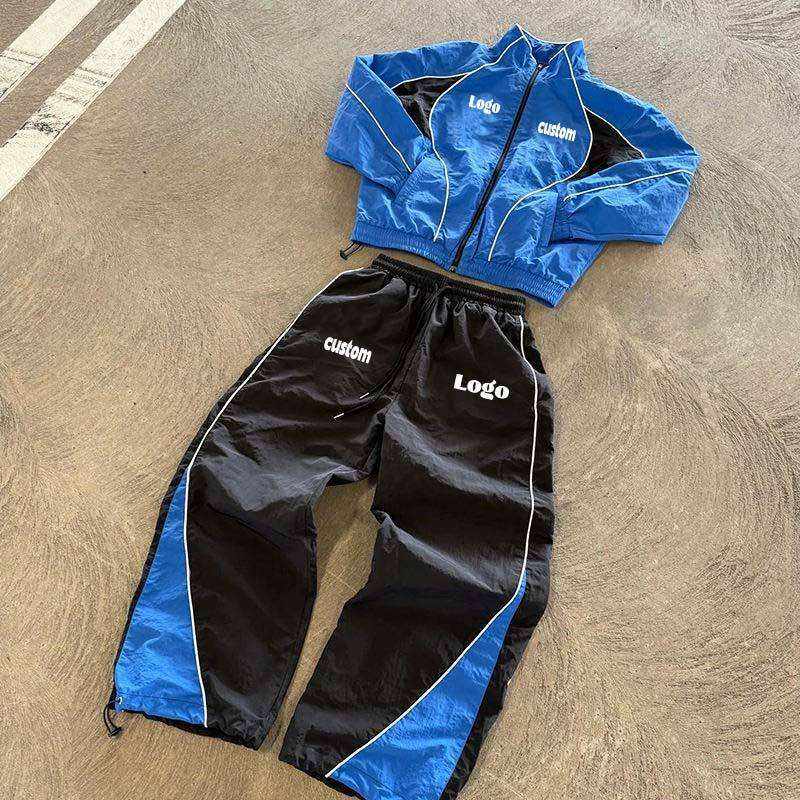 ชุดวอร์มกันลมแบบมีซิป เสื้อแจ็คเก็ตและกางเกงขายาว ชุดกีฬาแบบสั่งทำพิเศษ กันน้ำ สะท้อนแสง ไนลอน ลำลอง เป็นมิตรกับสิ่งแวดล้อม สำหรับผู้ชาย