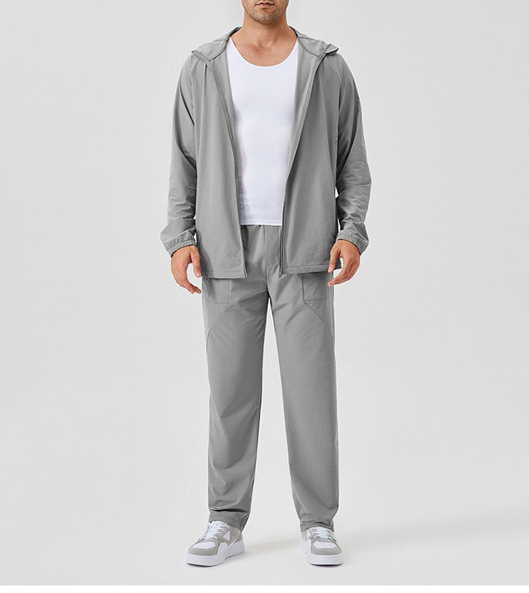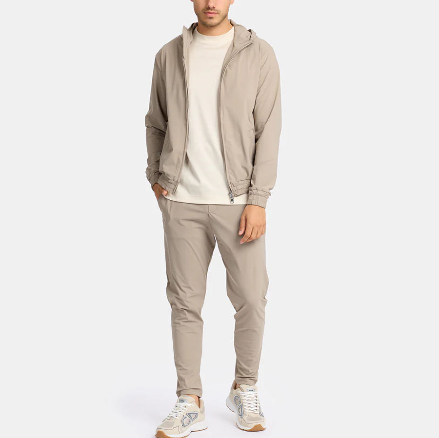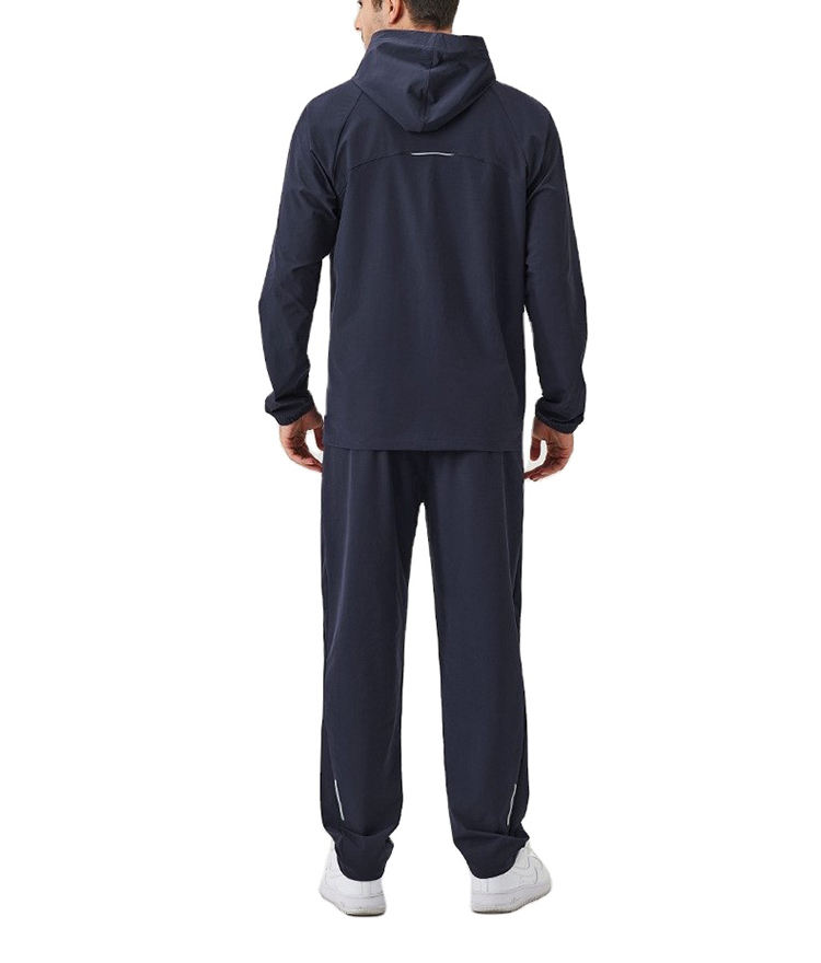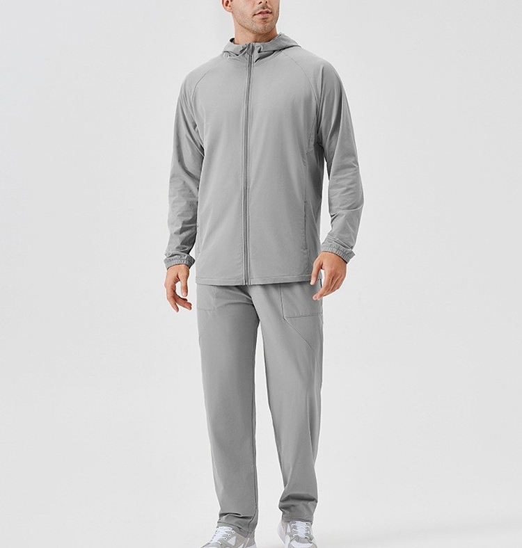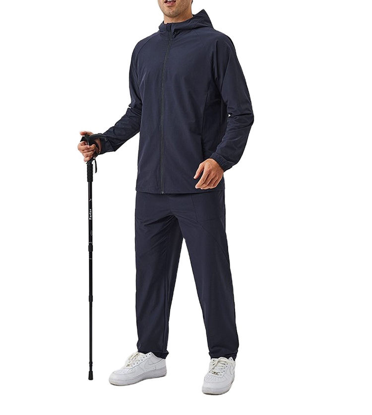 ชุดเสื้อกันลม2ชิ้นสำหรับผู้ชายชุดวิ่งออกกำลังกายผ้าไนลอนกันลมบล็อกสีมีฮู้ดและกางเกงขาสั้นพร้อมโลโก้กันลม