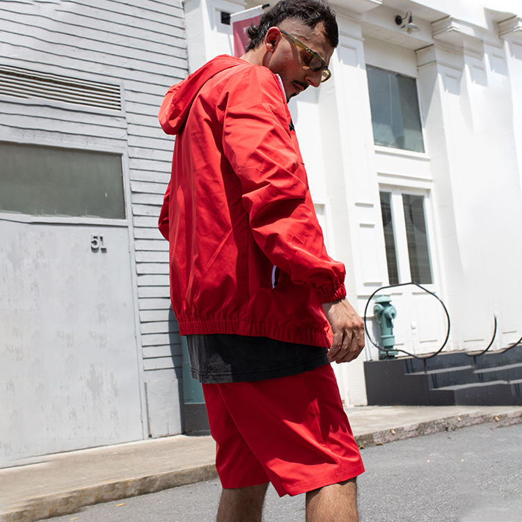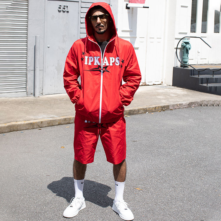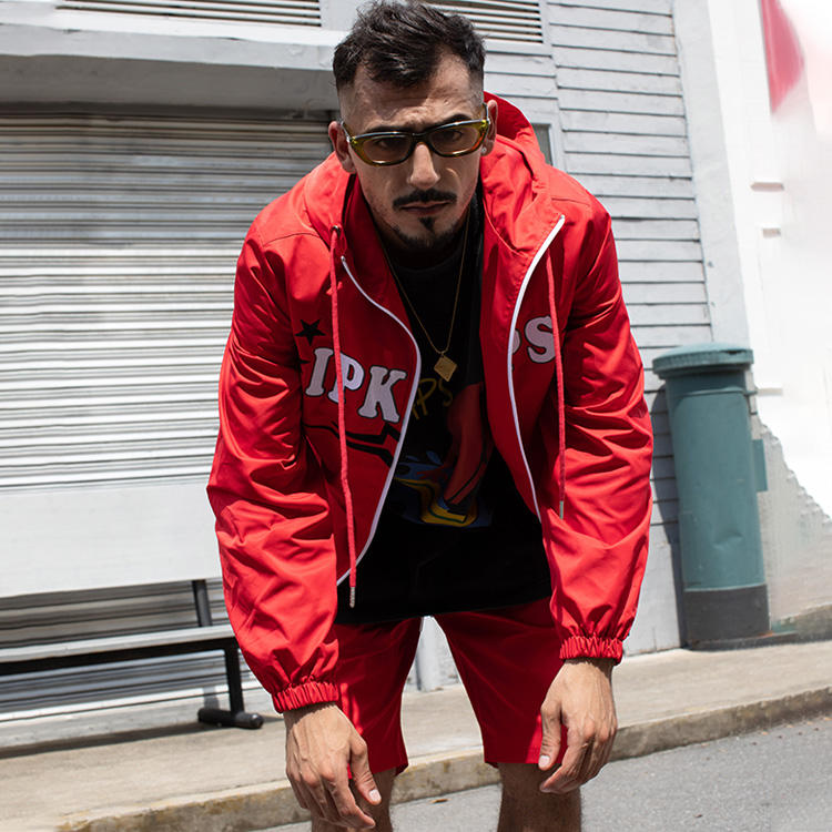 ชุดเสื้อกันลมสำหรับผู้ชายชุดวอร์มผ้าโพลีเอสเตอร์มีซิปและกางเกงขาสั้น