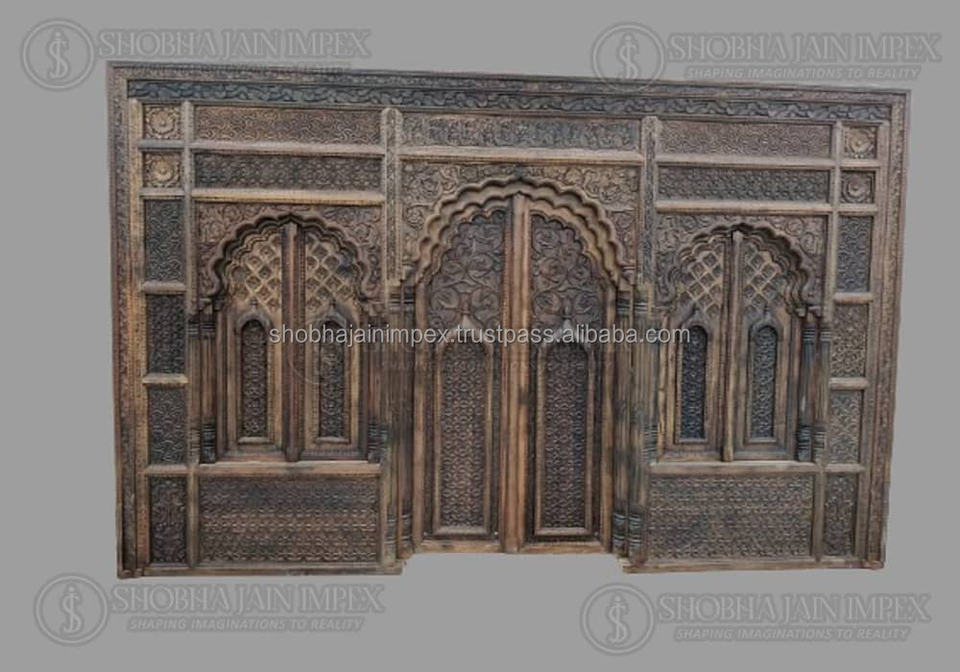 กรอบไม้งานแต่งงานสไตล์หน้าต่างแบบดั้งเดิมของตกแต่งอินเดียแผ่นไม้ทางเข้าทำด้วยมือ