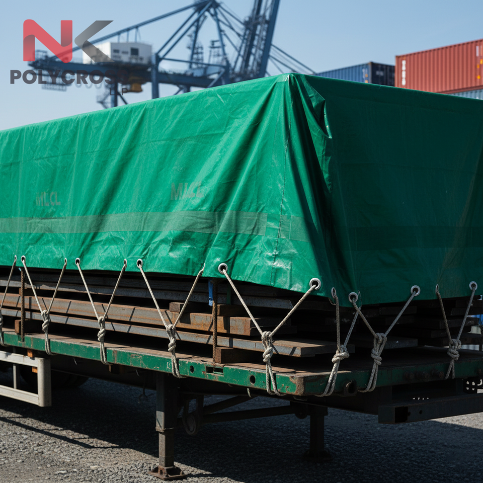 ผ้าคลุมรถพ่วงกันลม กันฝุ่น กันน้ำ ขอบเสริมแรง ผลิตจาก PVC พร้อมห่วงอลูมิเนียม