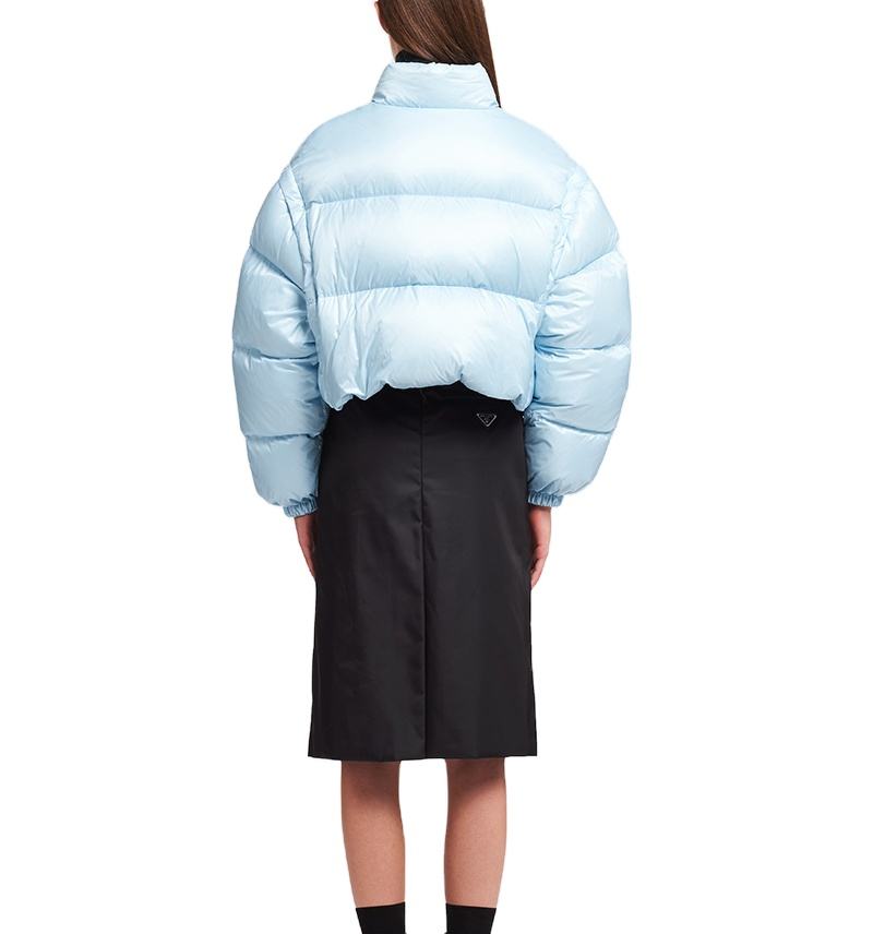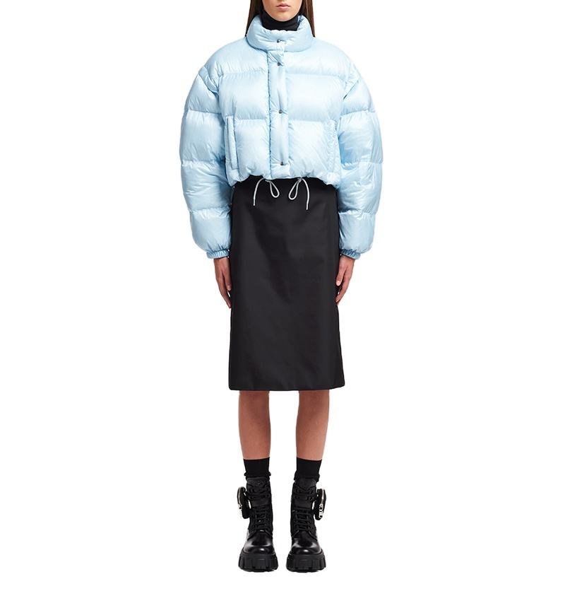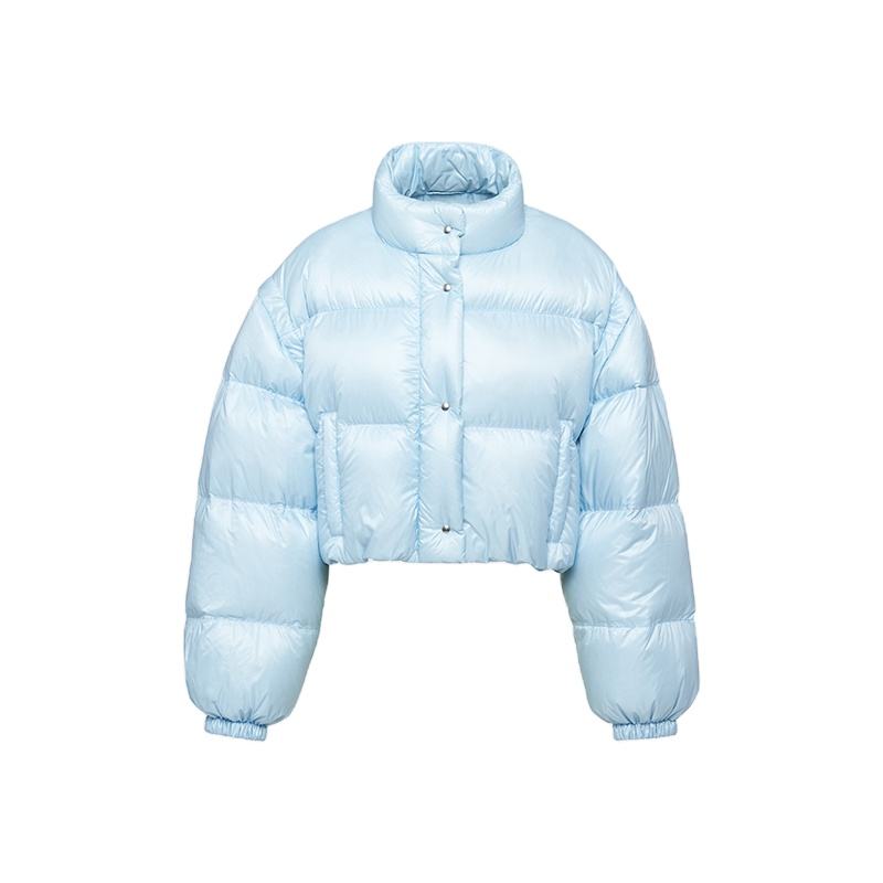 แจ็กเก็ตทรงพองกันลมแขนยาวทรงพลัสไซส์สำหรับผู้หญิงแจ็คเก็ตทรงพองกระดุมแบบพองแขนยาวย้อมท้องฟ้า