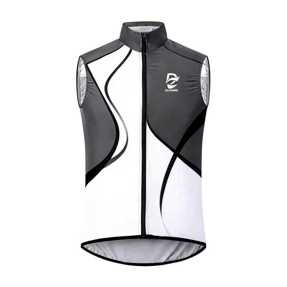 เสื้อกั๊กปั่นจักรยานกีฬาแบบไร้แขน สีดำขาวตัดต่อ สะท้อนแสง น้ำหนักเบา ระบายอากาศ แห้งเร็ว กันลม สำหรับปั่นจักรยานเสือภูเขาและถนน