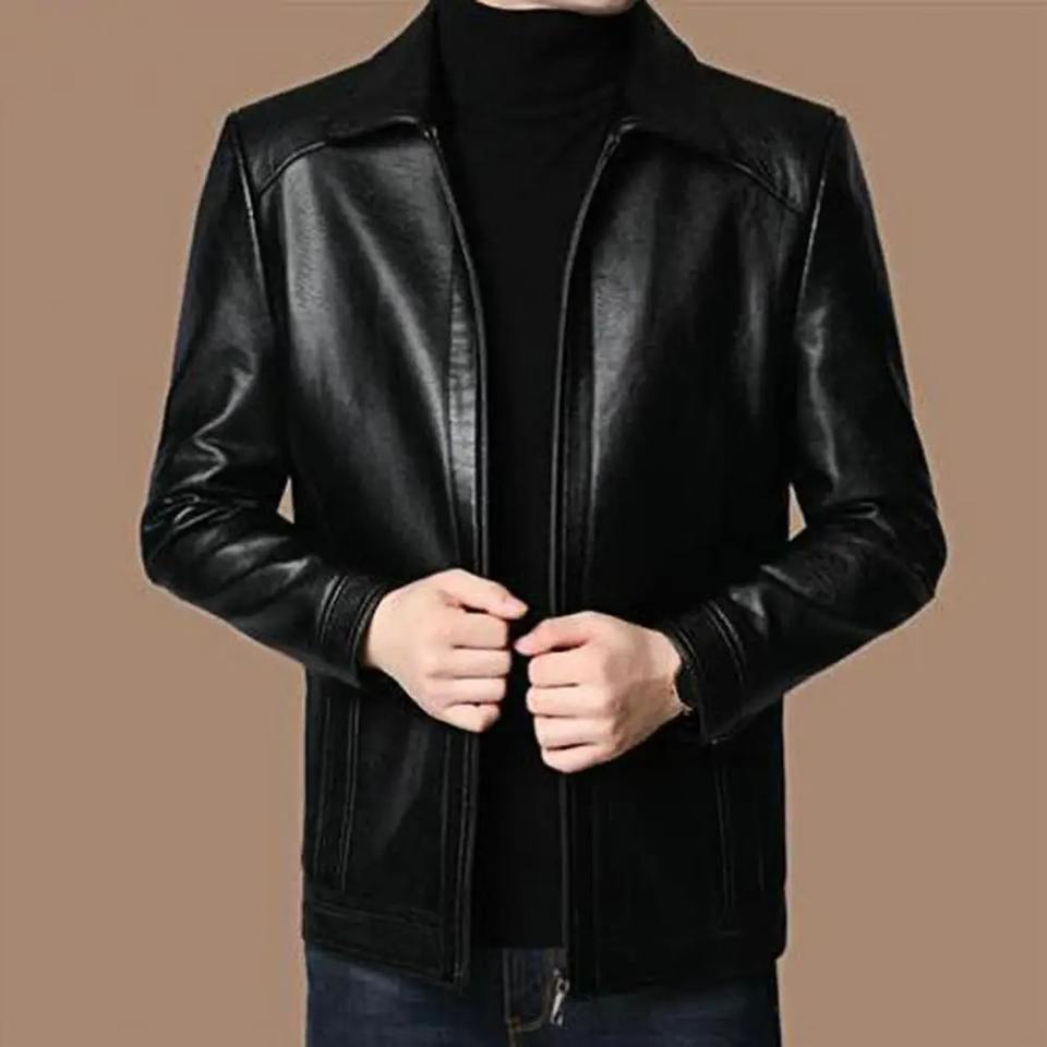เสื้อแจ็กเก็ตหนังสำหรับผู้ชาย, เสื้อแจ็คเก็ตหนังมีซิปสำหรับฤดูหนาวให้ความอบอุ่นกันลมสำหรับผู้ชาย